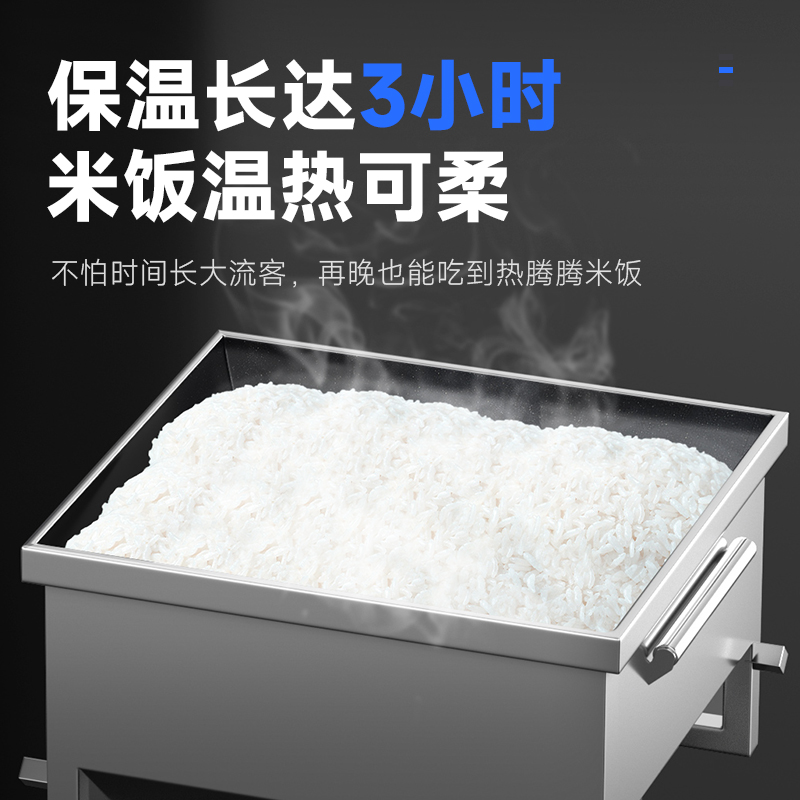 采用 304 不锈钢材质,可拆卸内胆支持高温消毒;具备卡饭报警、缺米预警等故障自检功能。